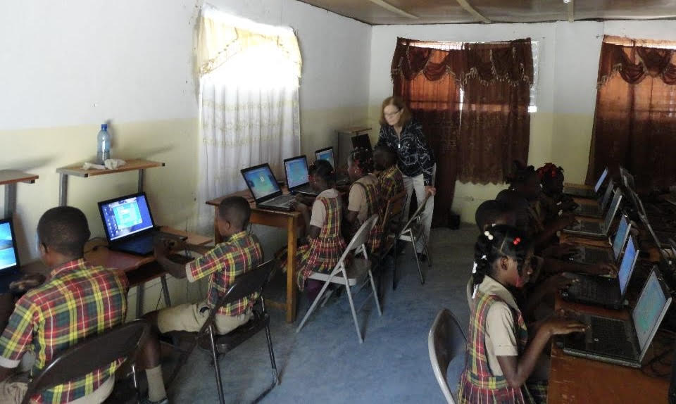 Men, tout kòmanse – ak elèv k ap aprann nan laboratwa òdinatè lekòl la.